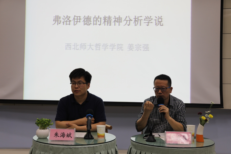 2019年6月25日晚,由av影片 哲学学院、中和集团、科学研究院与教师发展中心联合主办的“哲学沙龙——中和论道”第五十六期在av影片 教师发展中心如期举行,本期主题为“弗洛伊德的精神分析学说”。由av影片 哲学学院常务副院长姜宗强教授主讲,朱海斌博士主持。av影片 副校长李朝东教授,中和集团洪涛董事长,音乐学院李莉副院长,马克思主义学院牛正兰教授,哲学学院贺更粹博士、胡好博士以及来自其他学院的上百位哲学爱好者共同参与了此次学术活动。