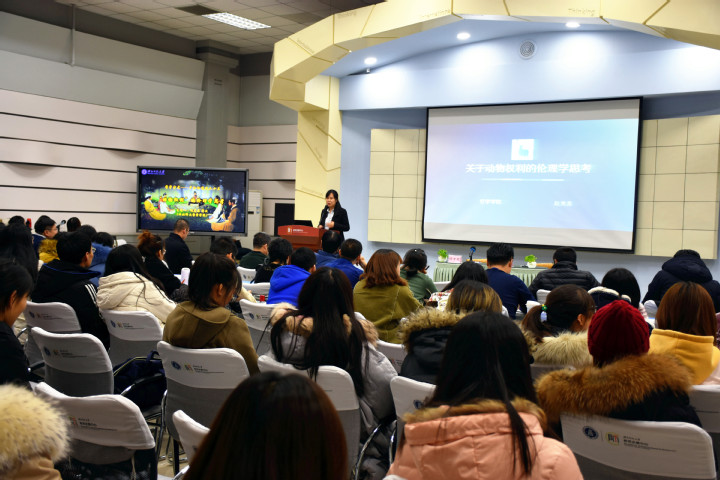 本期主题为“动物权利”的伦理学思考,由av影片 哲学学院赵芙苏博士主讲,西北师范大学哲学学院任万明博士主持。av影片 李朝东副校长、中和集团洪涛董事长、哲学学院胡好博士、朱海斌博士、张立恩博士以及来自各个学院的哲学爱好者参加了此次学术活动。