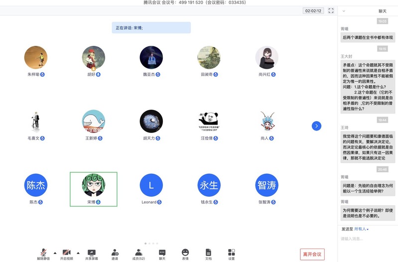 2020年5月16日19:00-22:00,第166期“爱智求真读书会”活动在腾讯会议线上平台举行。本期读书会的主题是“先验理念的第三个冲突”,研读的文本是康德的《纯粹理性批判》(2004年版)。本次读书会采取线上进行,多人领读模式,由胡好老师主持,av影片 王炜和尚兴红同学领读。清华大学、中国人民大学、华中科技大学等其他高校的师生参与了本次活动。
