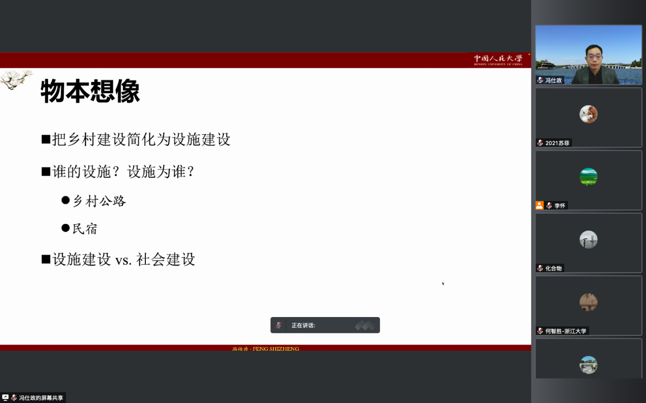 互动环节,诸位师生踊跃提问,冯老师一一进行解答。他深入解释了乡村振兴与乡村建设的联系和区别以及市民化与国民化的差异等问题,受到了师生的一致好评。本次讲座在线人次达到500多人,有力宣传了我校社会学学科建设事业。