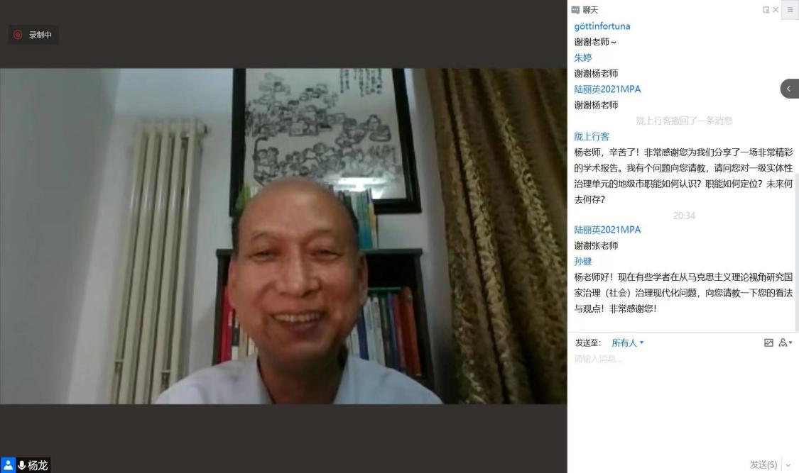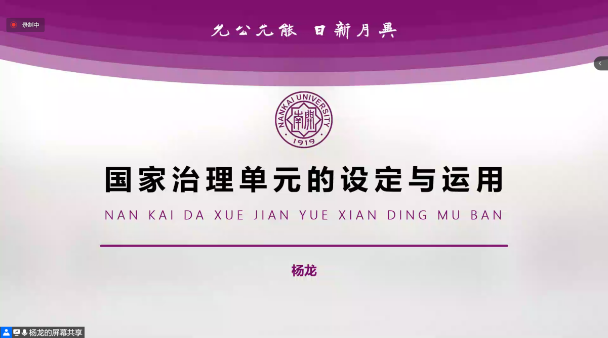 2021年11月26日晚,应av影片 邀请,南开大学周恩来政府管理学院杨龙教授在腾讯会议为av影片 社会发展与公共管理学院师生带来了题为“国家治理单元的设定和运用”的学术讲座。本次讲座由刘磊教授主持,由张文礼教授担任讲座评议人,200余名校内外师生参加了此次讲座。